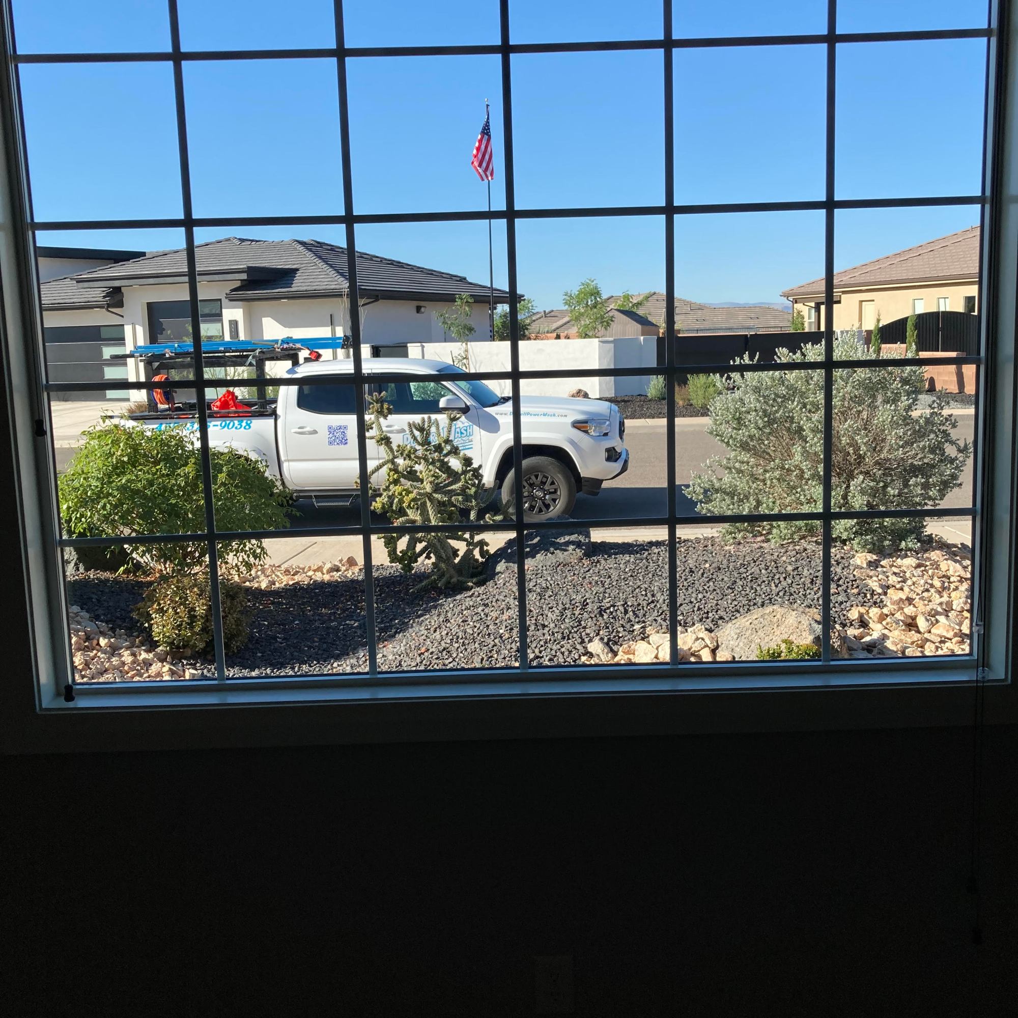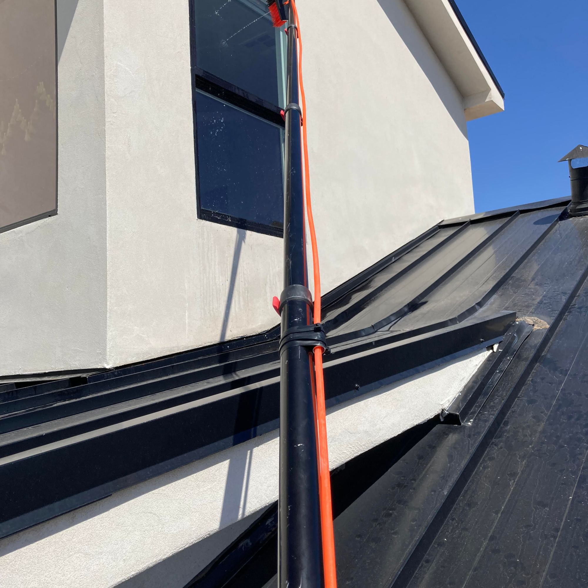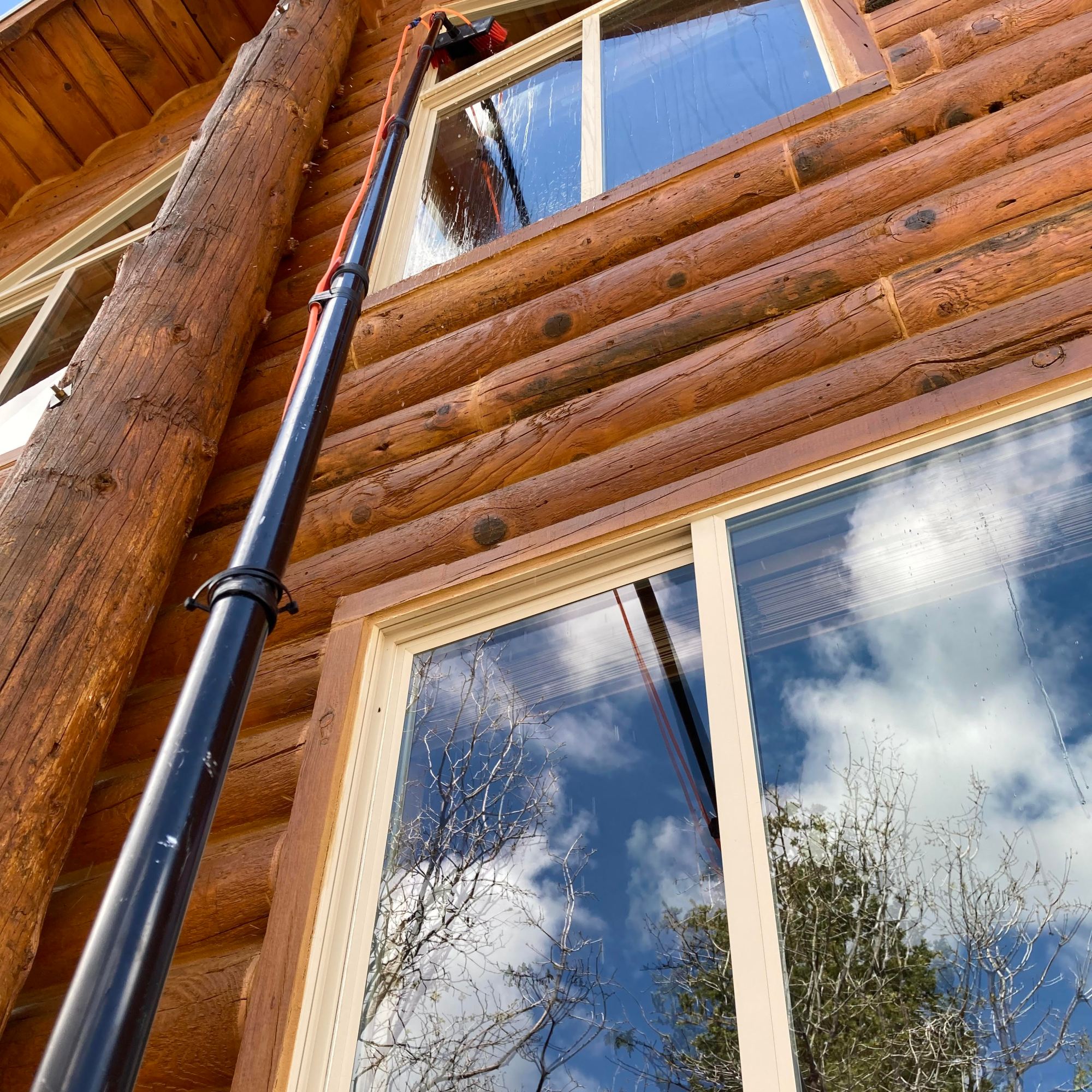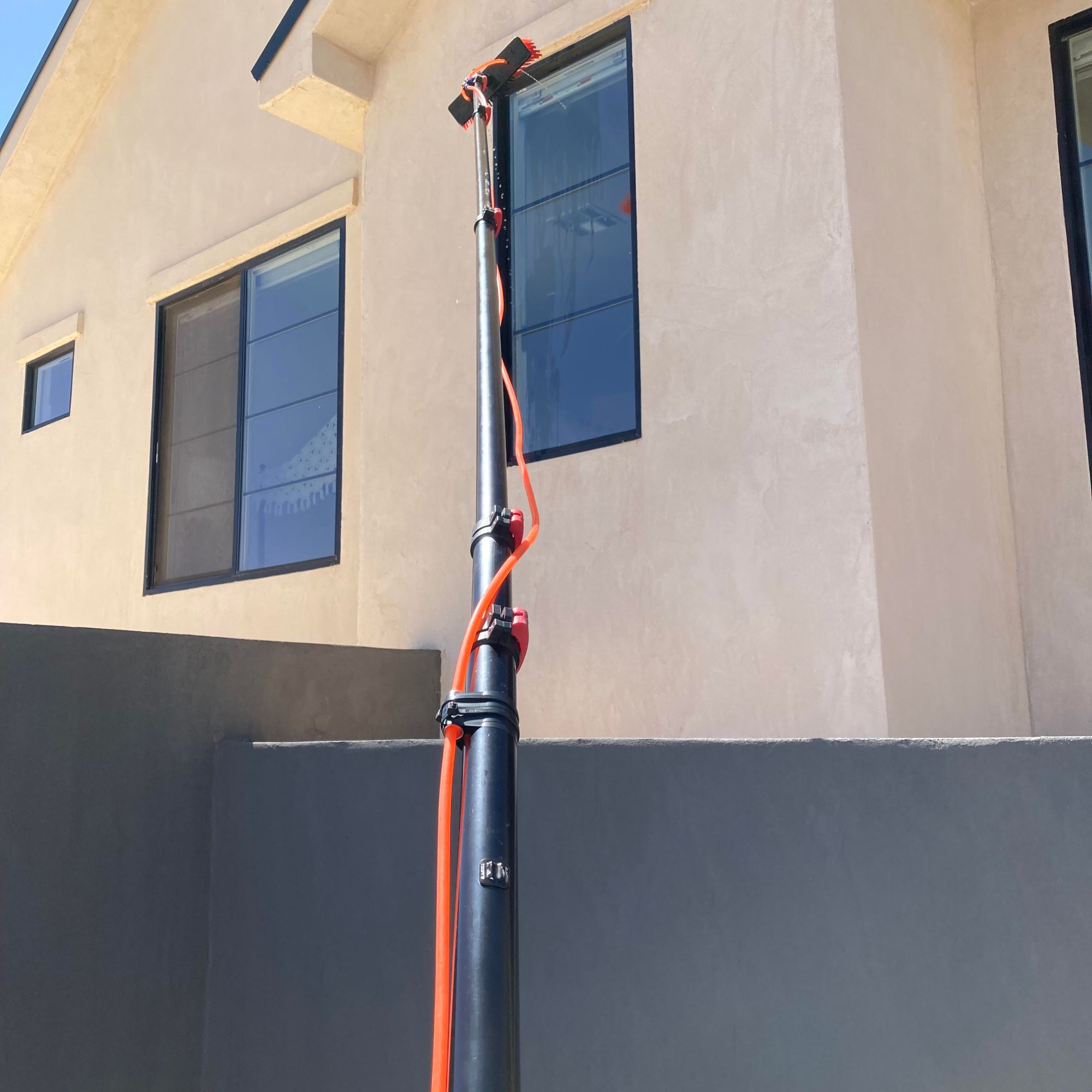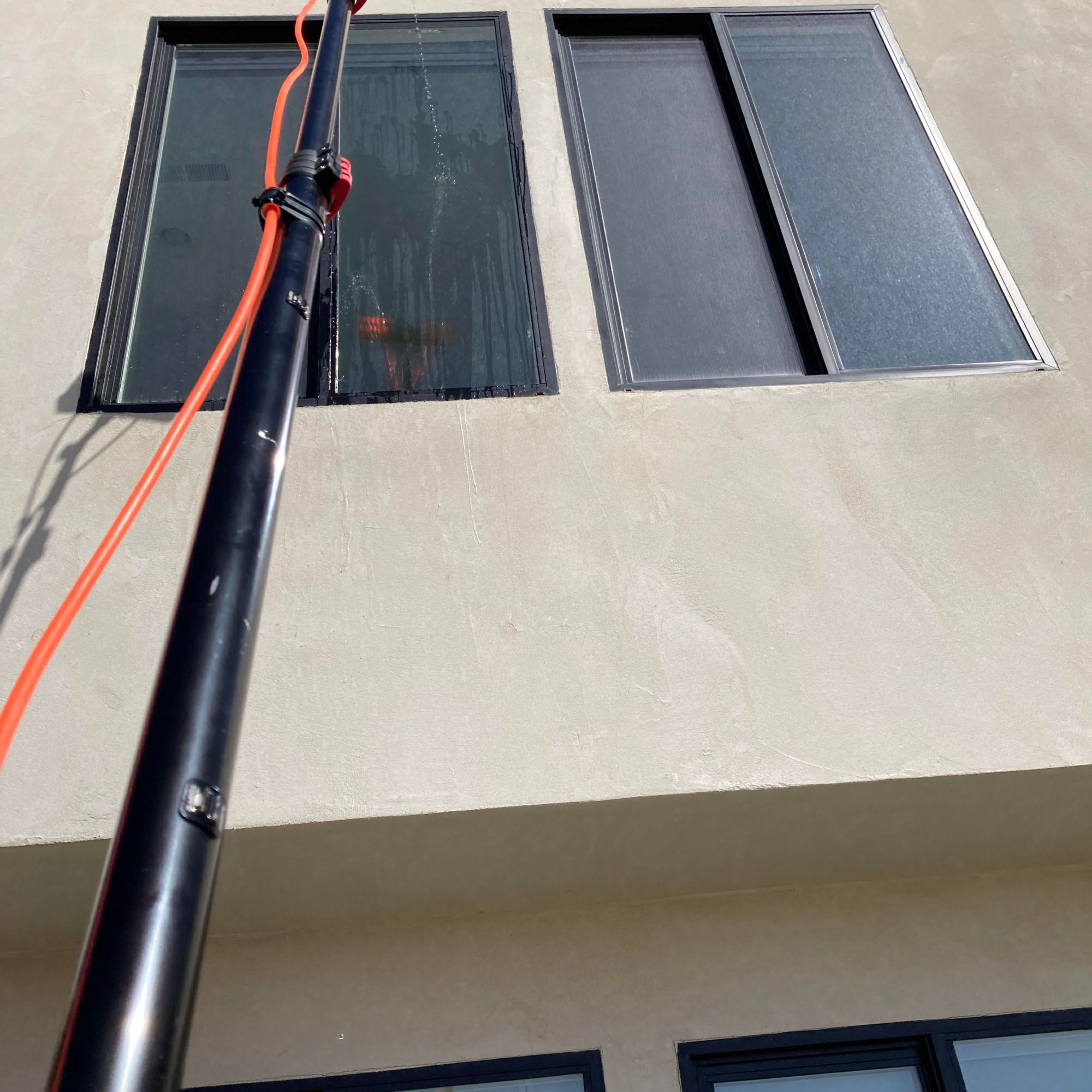 Naked windows! A water filtration system is used to bring out that reflective shine. Three filters are used to convert the water into 100% PURE water! The water leaves the filters with ZERO TDS (total dissolved solids), so the water will evaporate, no need for a squeegee.