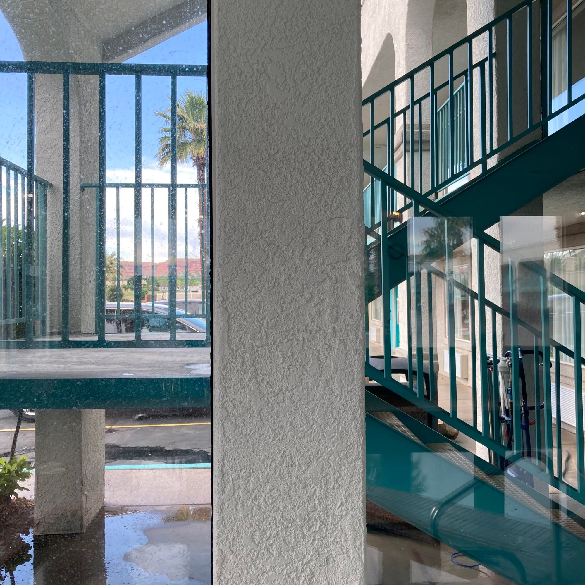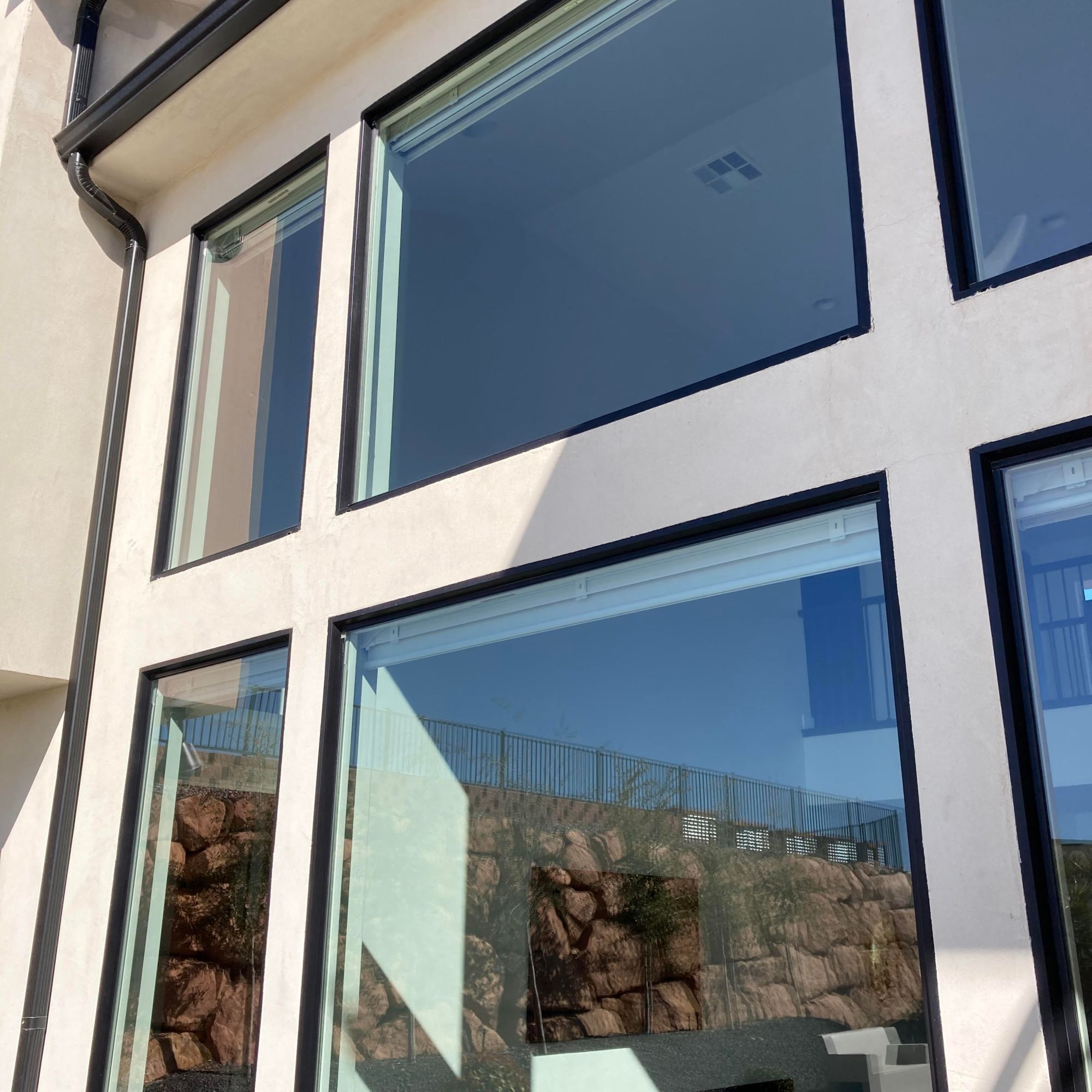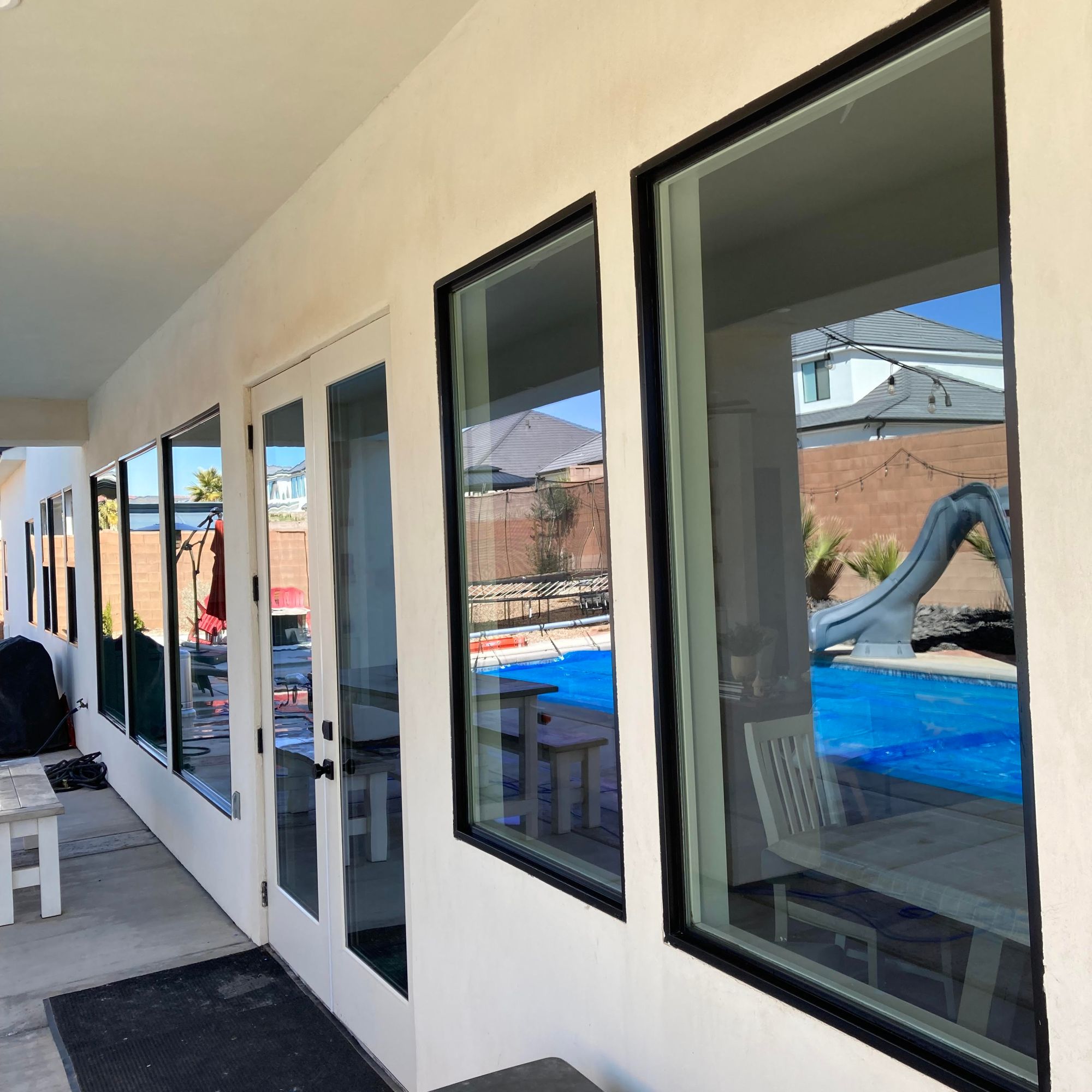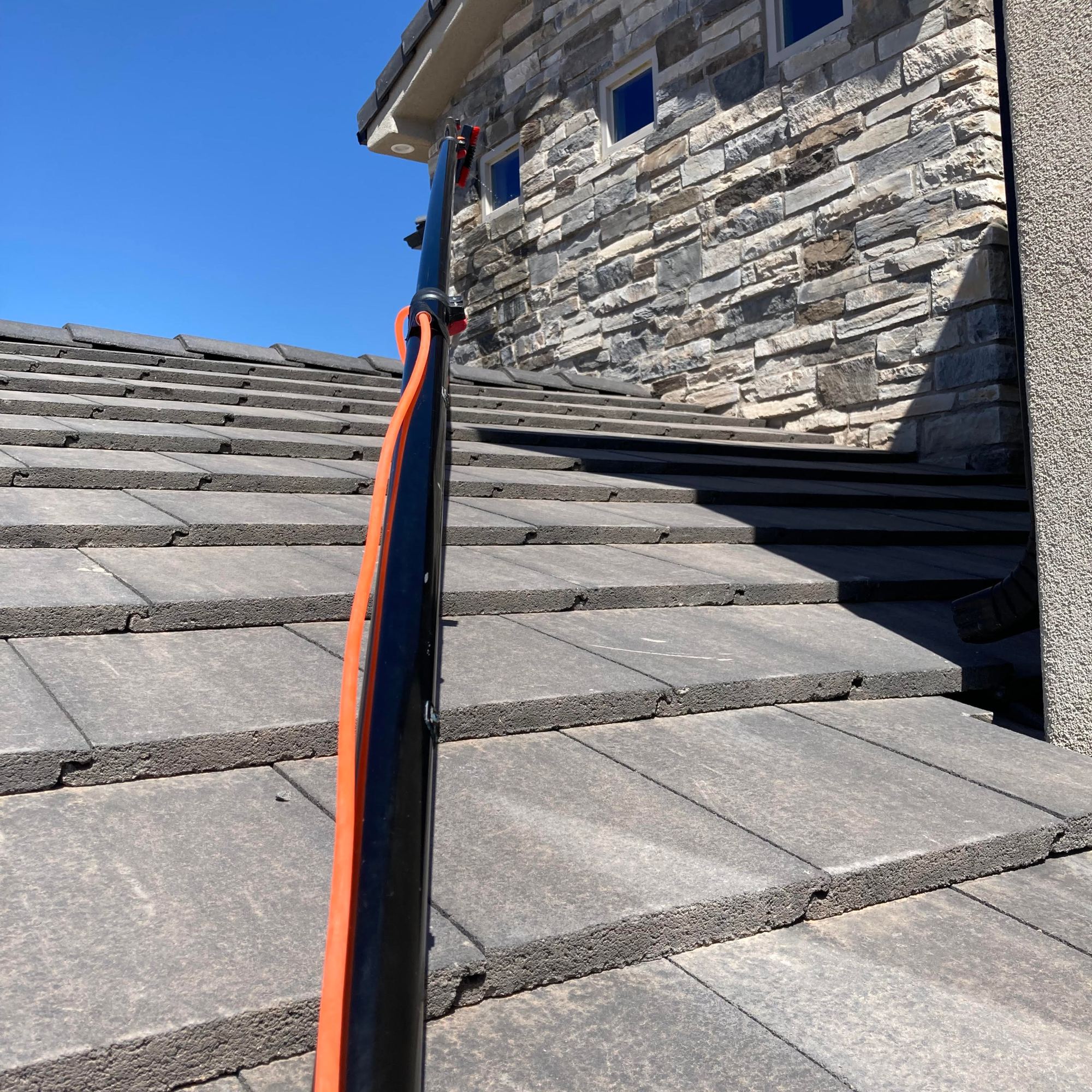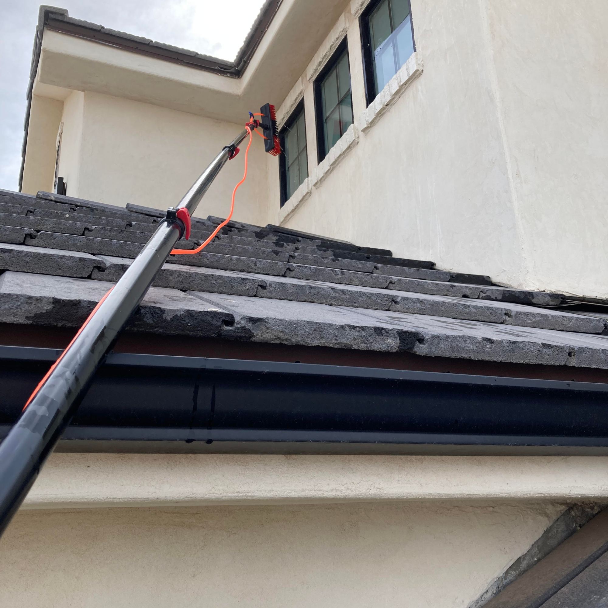 Naked windows! A water filtration system is used to bring out that reflective shine. Three filters are used to convert the water into 100% PURE water! The water leaves the filters with ZERO TDS (total dissolved solids), so the water will evaporate, no need for a squeegee.